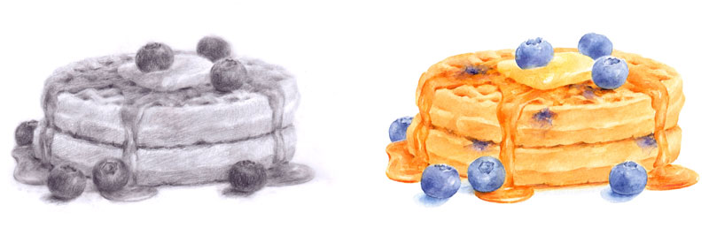 For illustration and commissioned work, I submit a tonal pencil drawing for client approval before going to paint. This allows me to set the composition so I know where all the lights and darks will be. I also decide where the white of the paper will remain. This drawing also allows the client to see how the image will look in a layout and make any necessary revisions before the final illustration.
